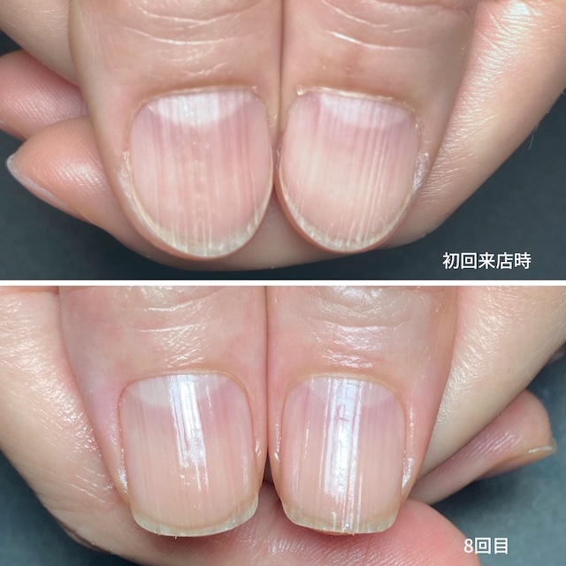 なぜなら、ジェルやアクリルなどの「支え」や「保護」に頼らず、サロンケアとホームケアで縦長美爪にできるということは、その状態を保つ知識と習慣が既にお客様自身の手に入っている状態でコース終了を迎えることができるからです。
