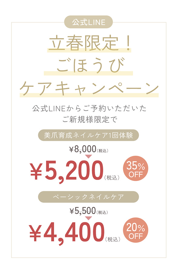 ジェルやアクリルを使わず、あなたのありのままの爪を綺麗な爪に整えてまいります。
