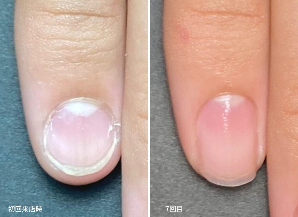 でも、変えられる可能性があると知った瞬間、すぐに予約しようと思ったそうです。ここ数年で、育爪・自爪ケアという言葉や、爪を育てるという概念が広まってきました。