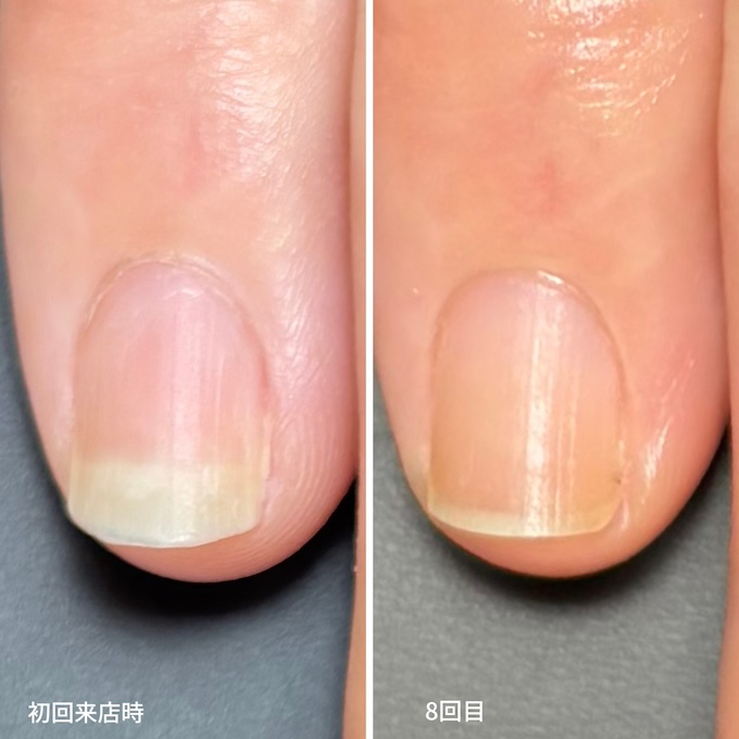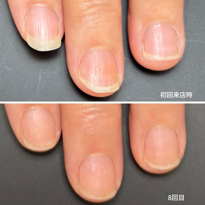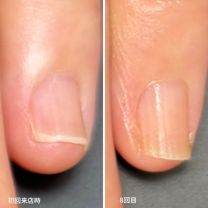 自爪育成店で、幅広の深爪をケアしたら縦爪に変わってきました